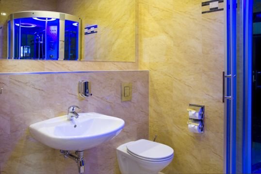 Во всех номерах: HD телевизор ЖК 32”, бесплатный доступ в Интернет, фен, эксклюзивная ванная с душевой кабиной (гидромассаж, радио, LED-освещение).